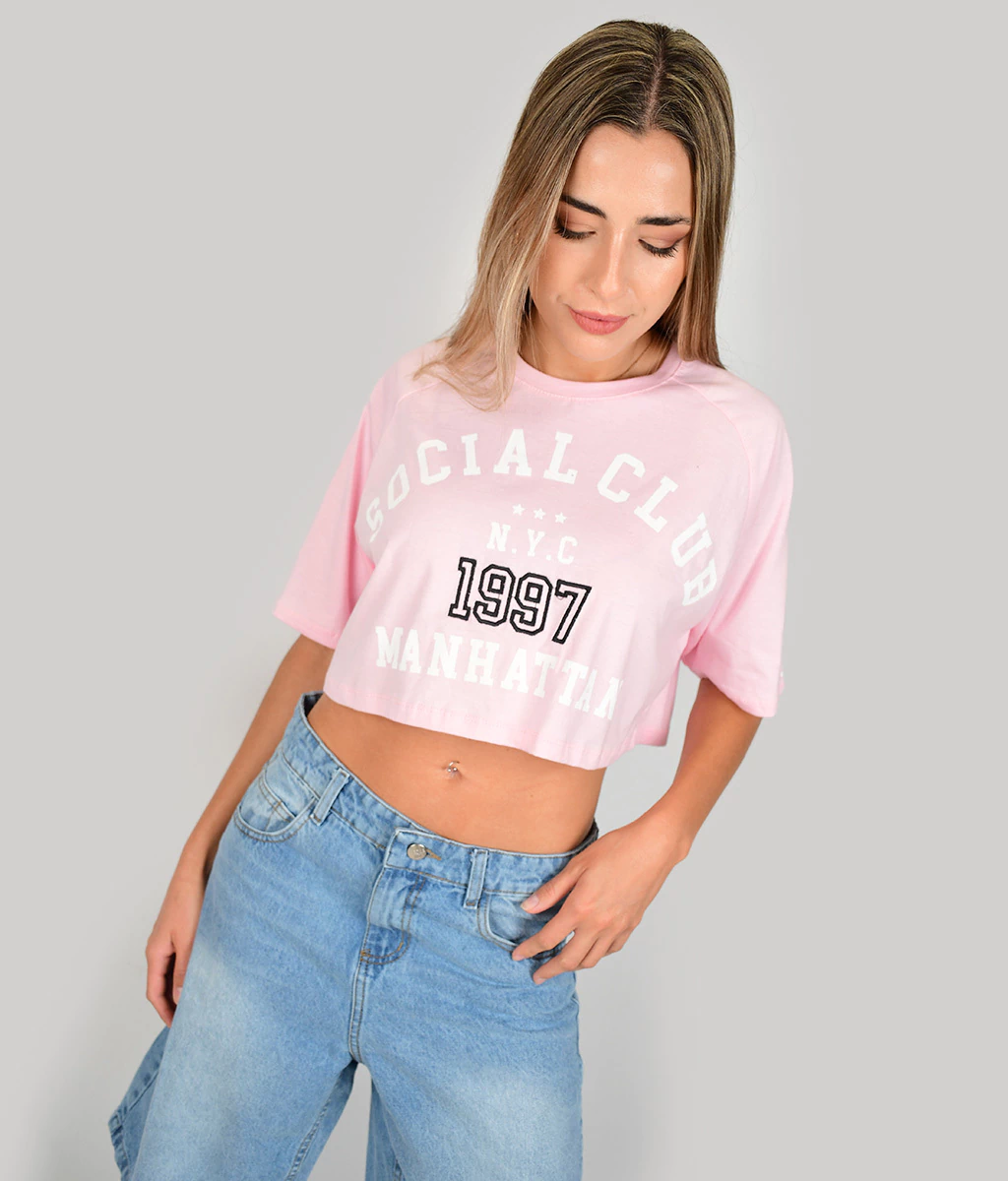 REMERA CROP DE ALGODÓN ESTAMPADO.