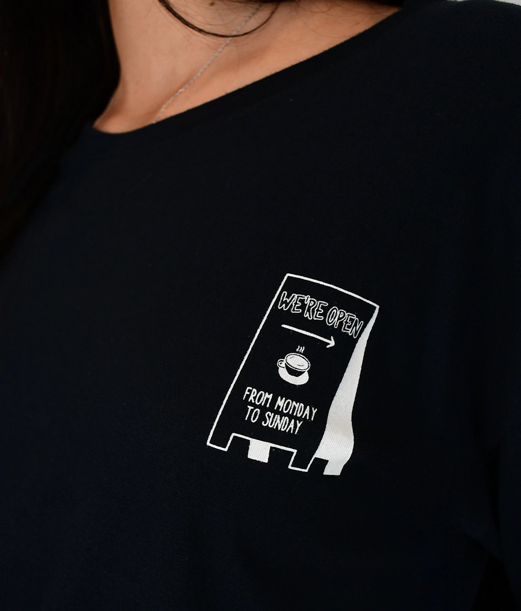 REMERON DE ALGODON MANGAS CORTAS CON ESTAMPA A UN LADO, EN ESPALDA Y CUELLO REDONDO.