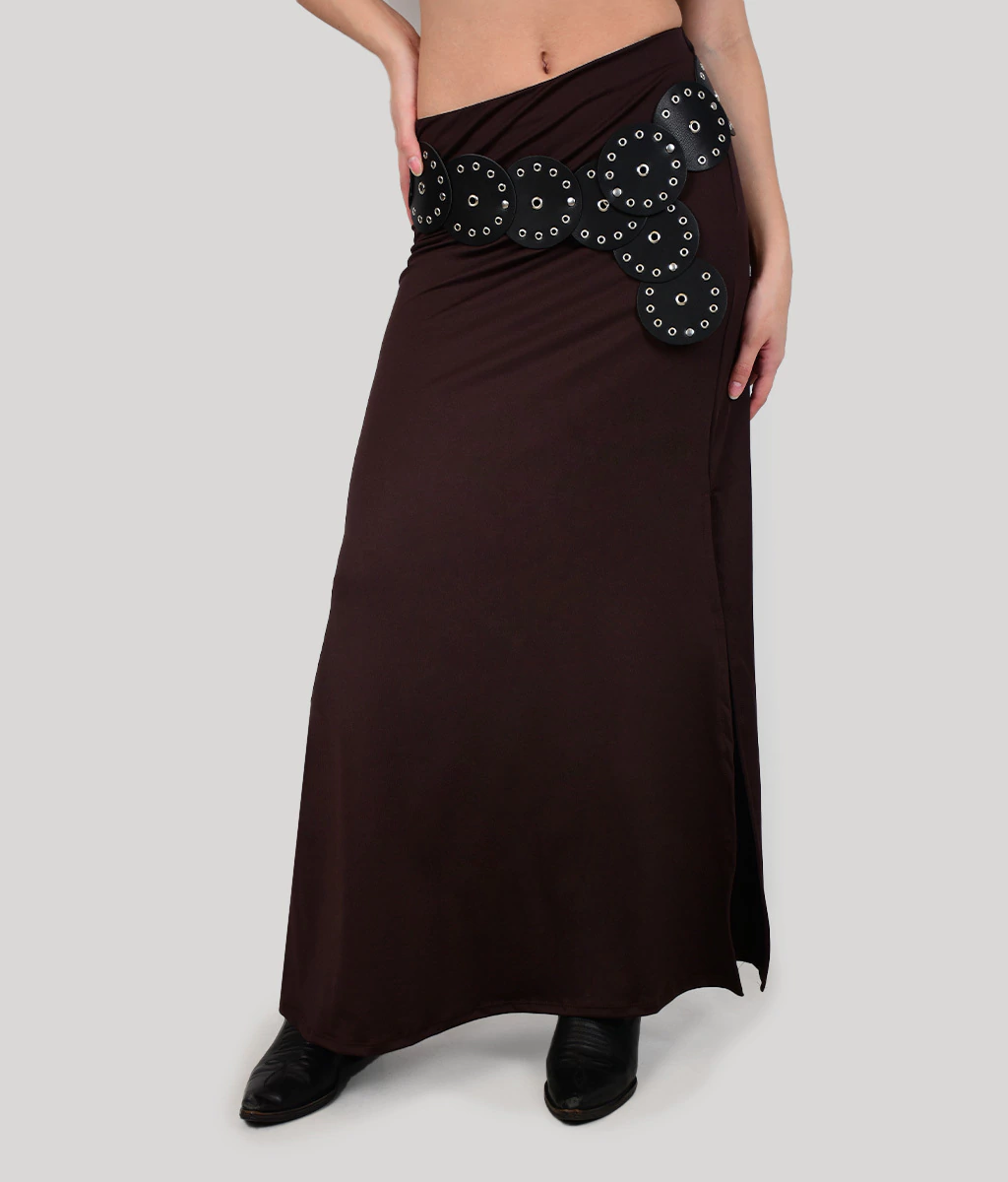FALDA LARGA DE MICROFIBRA CON TAJO A UN LADO Y ELASTICO EN CINTURA.