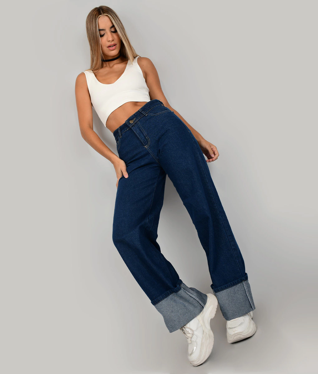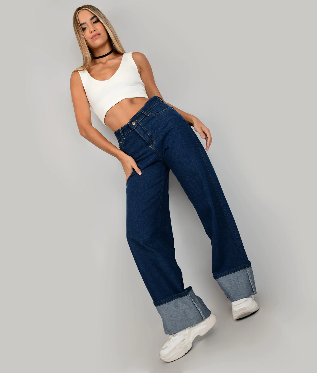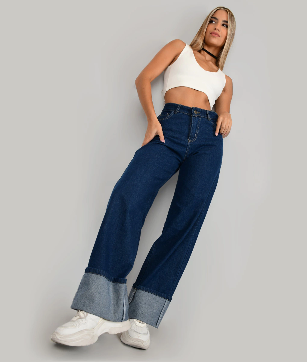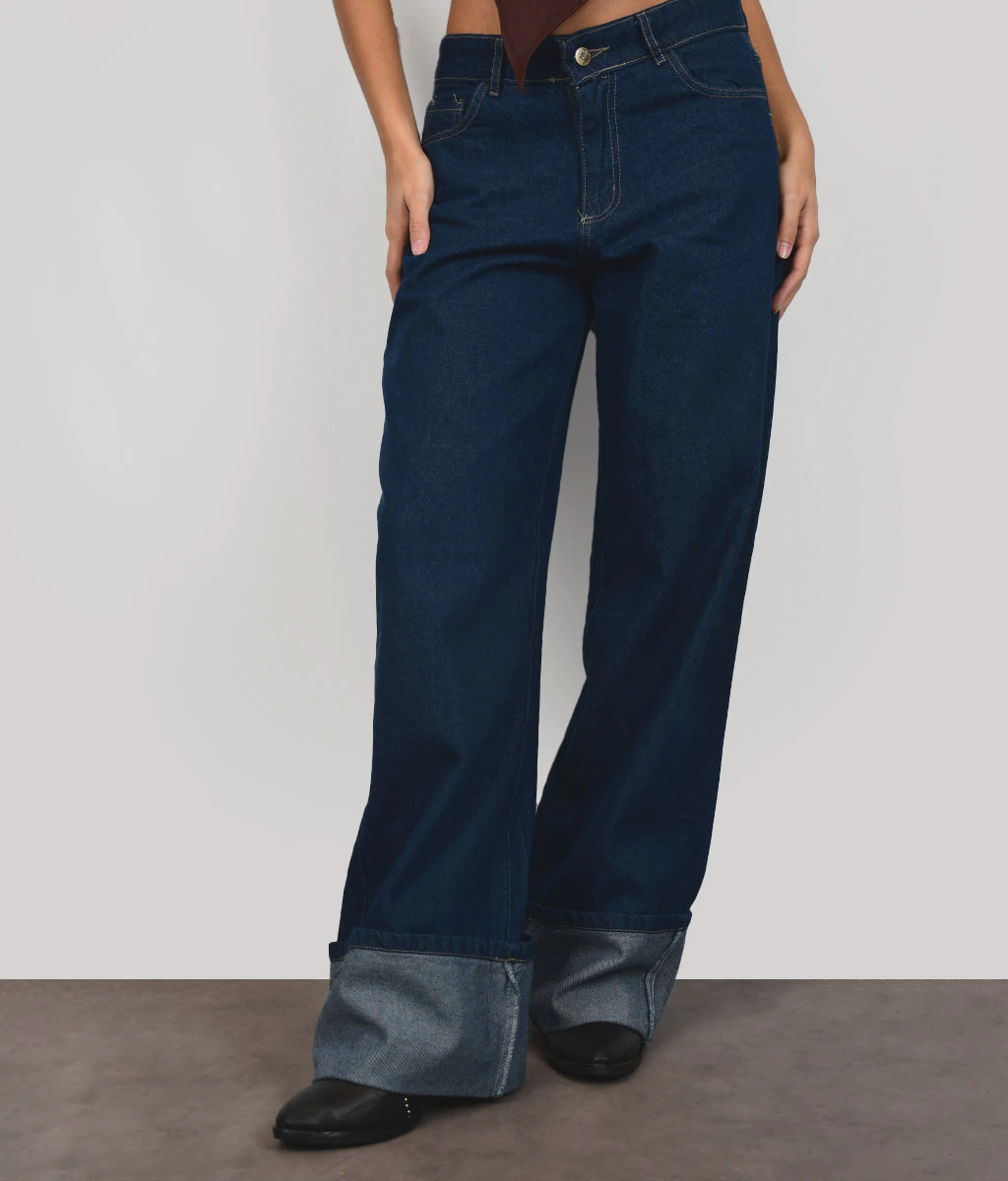 JEAN RÍGIDO TIRO MEDIO CON RUEDO EN BOTAMANGA.