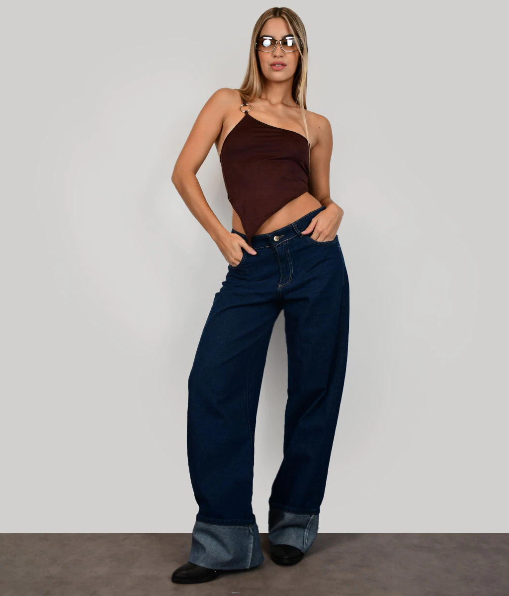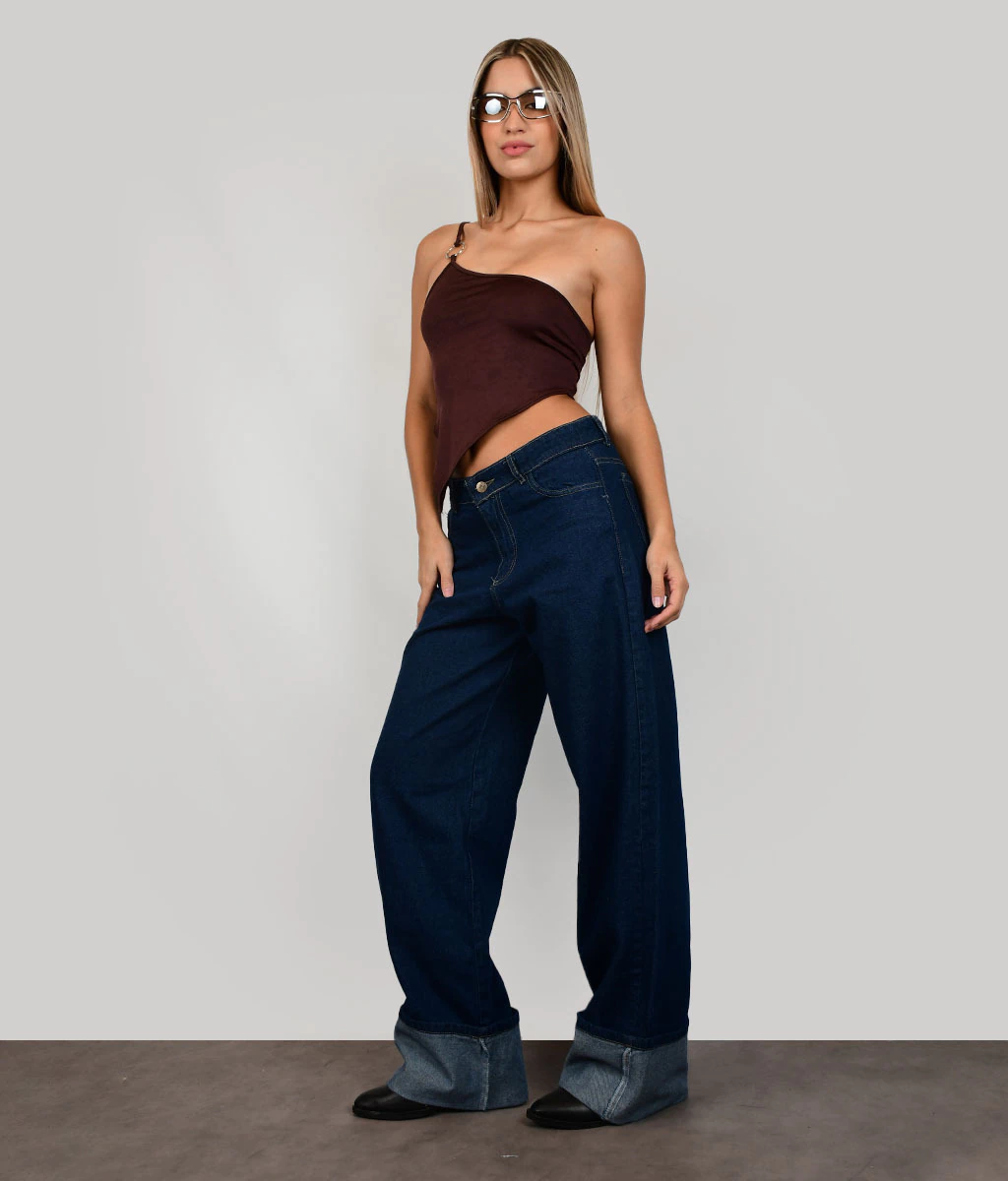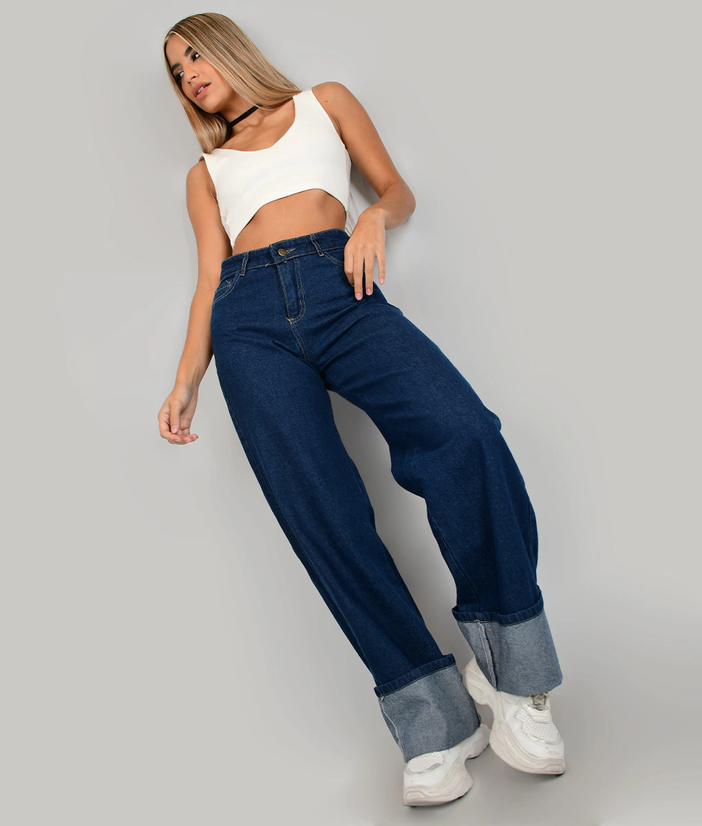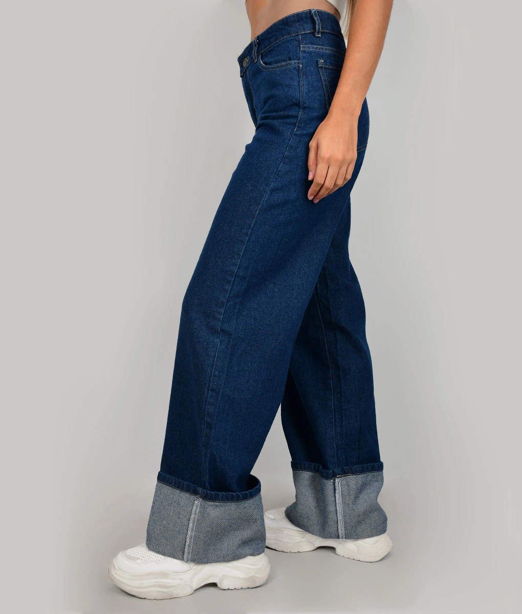 JEAN RÍGIDO TIRO MEDIO CON RUEDO EN BOTAMANGA.