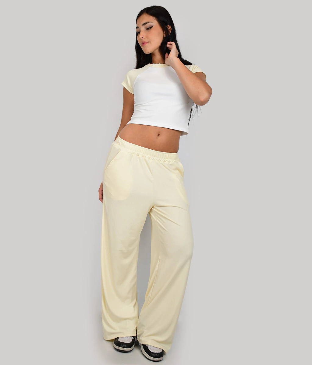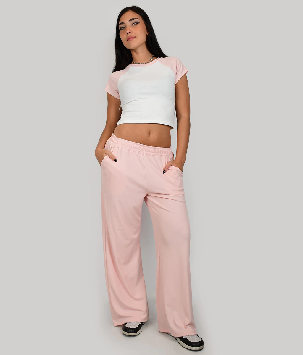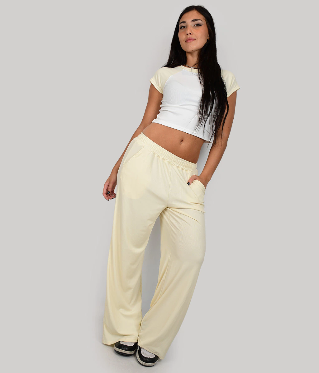 PALAZZO DE MICRO MORLEY BASICO CON ELASTICO EN CINTURA Y BOLSILLOS A LOS LADOS.