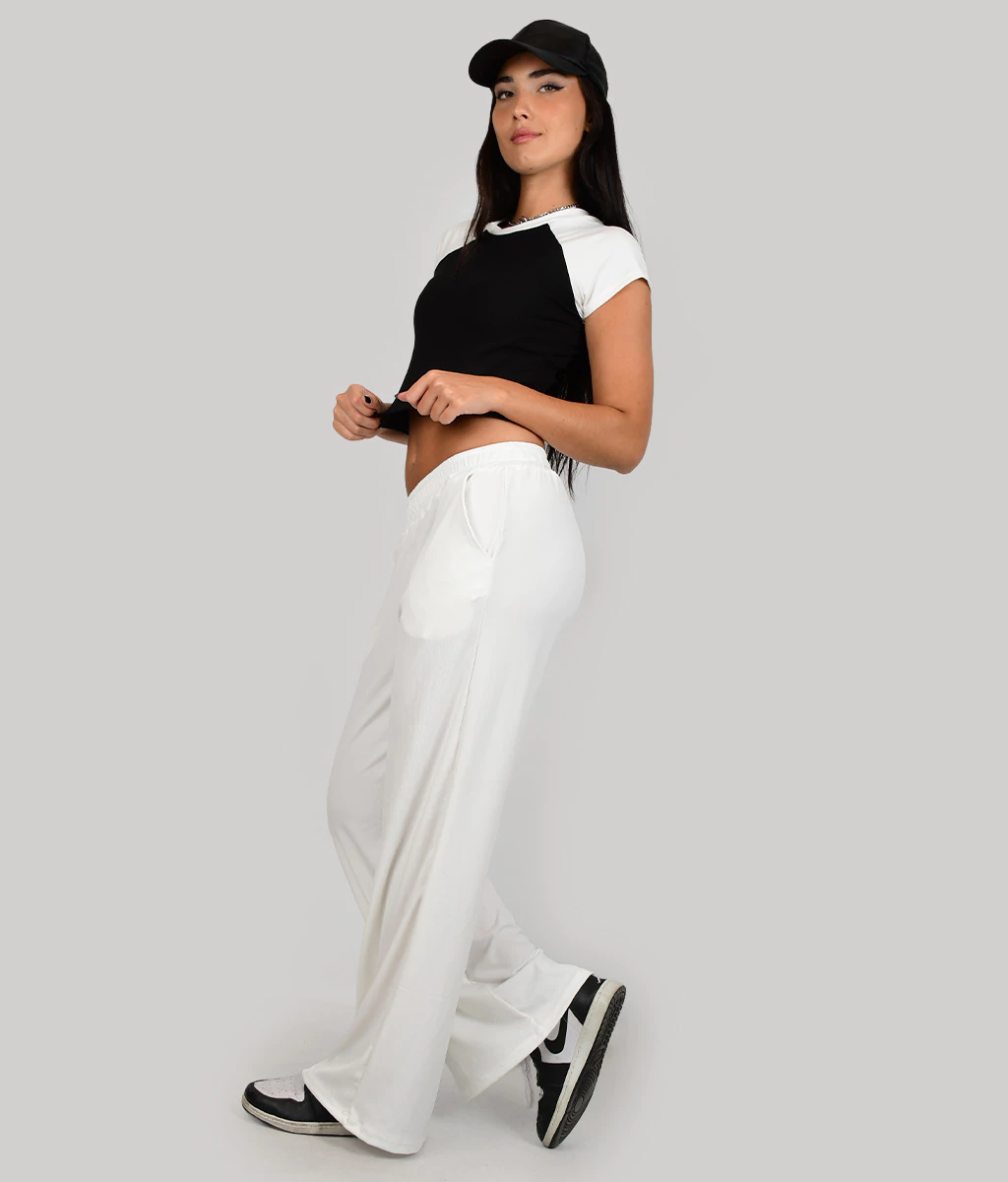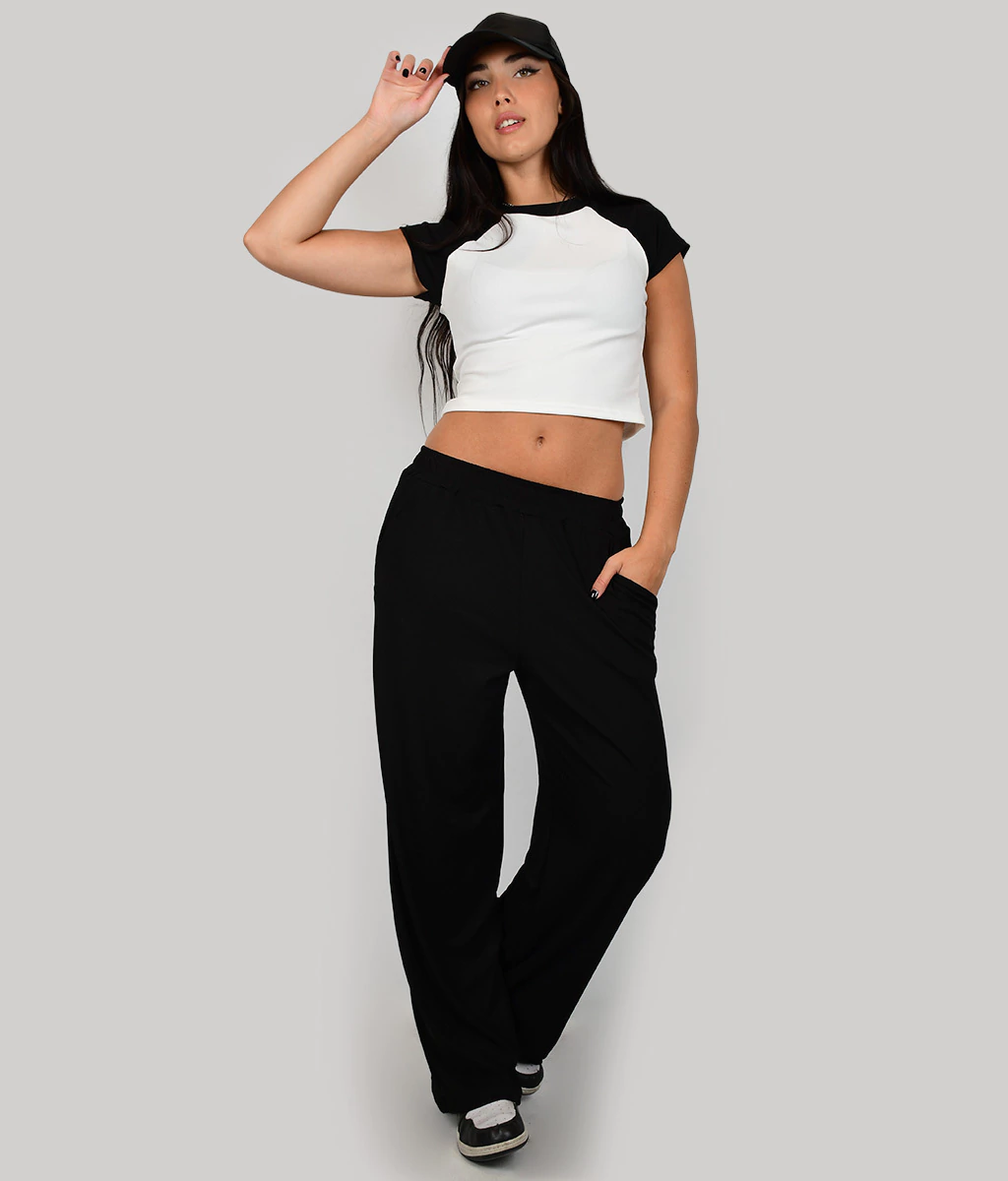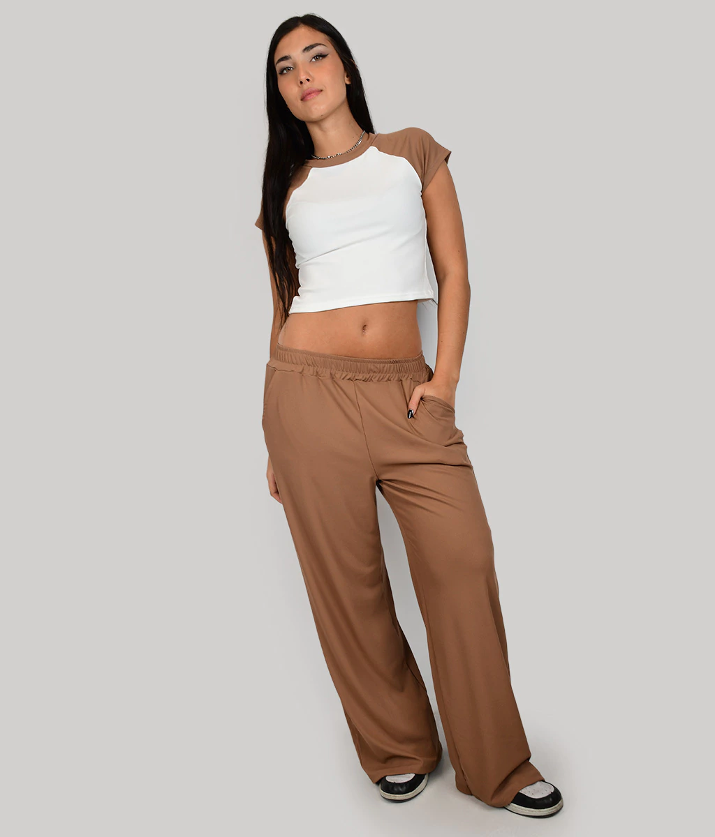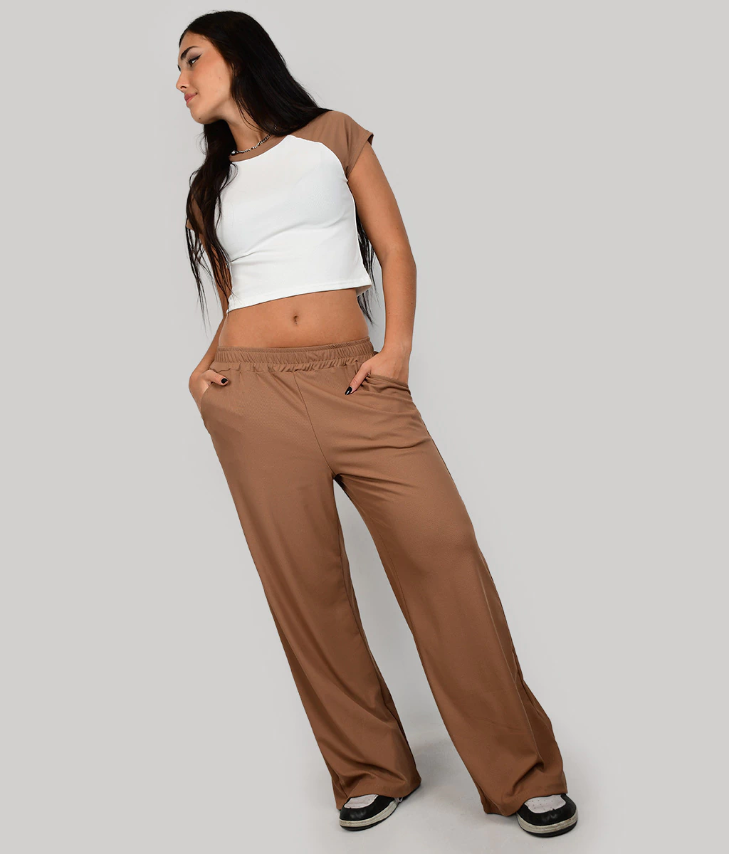 PALAZZO DE MICRO MORLEY BASICO CON ELASTICO EN CINTURA Y BOLSILLOS A LOS LADOS.