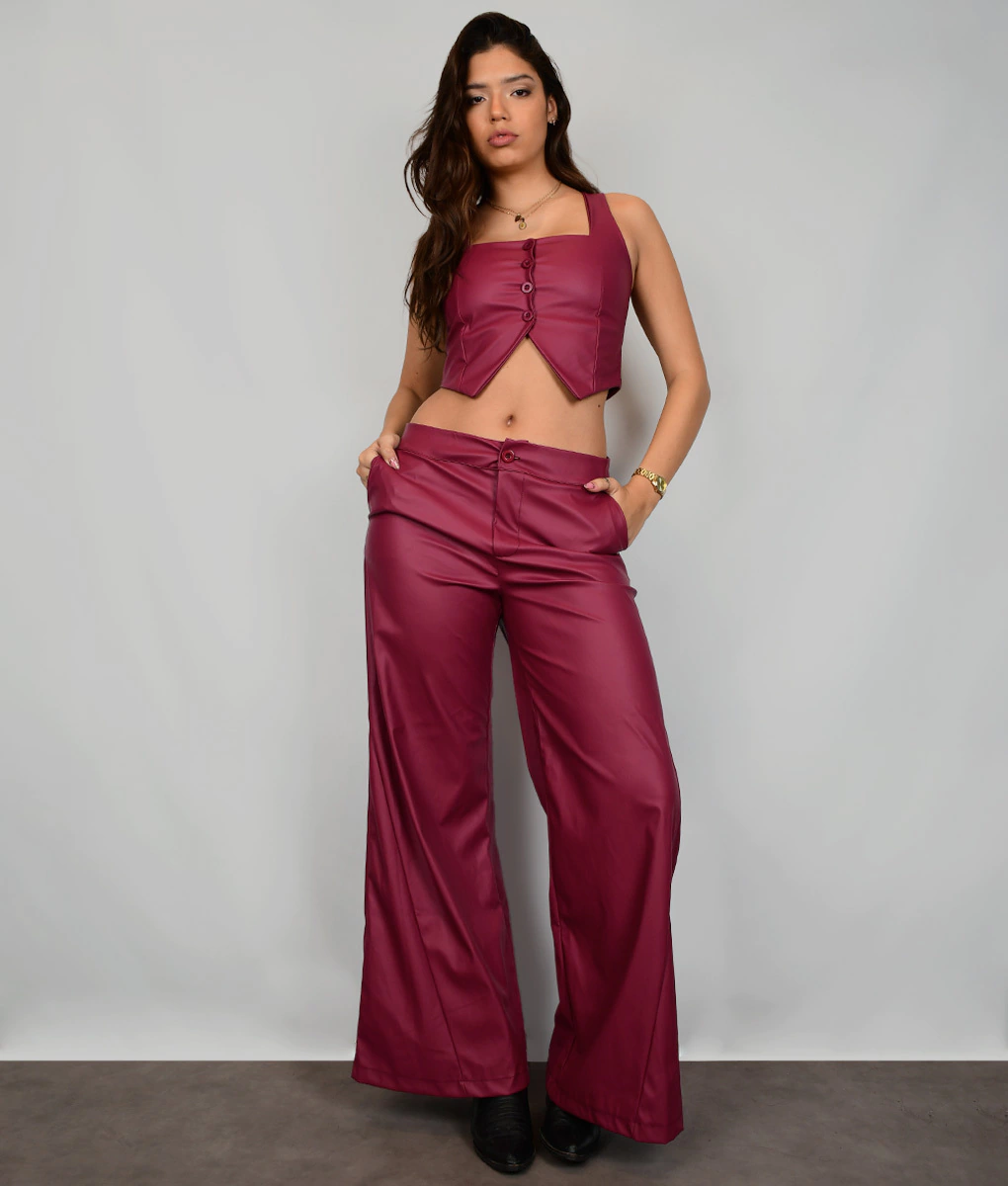 PANTALÓN EXTRA WIDE ENGOMADO CON BOLSILLOS A LOS LADOS.