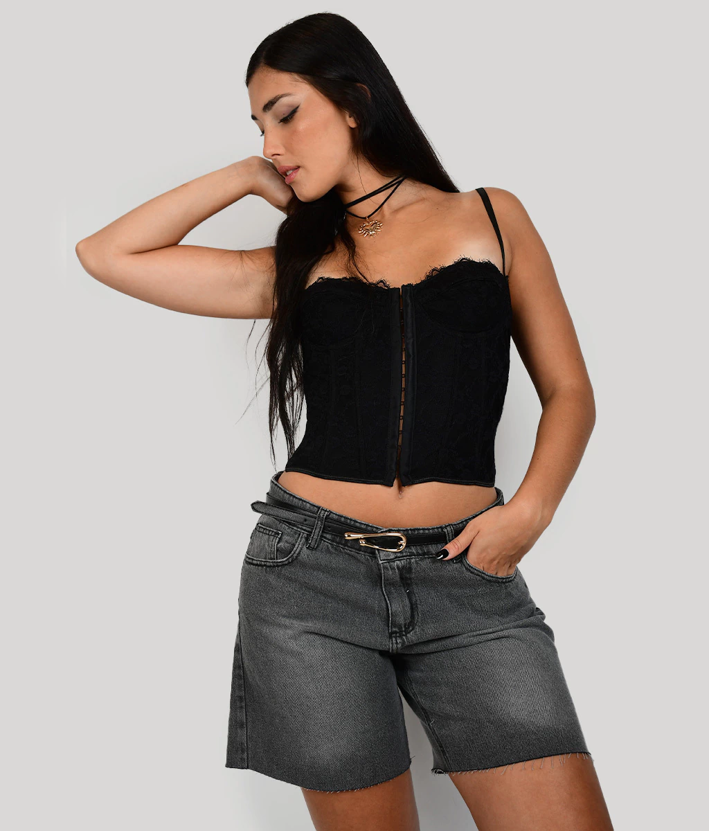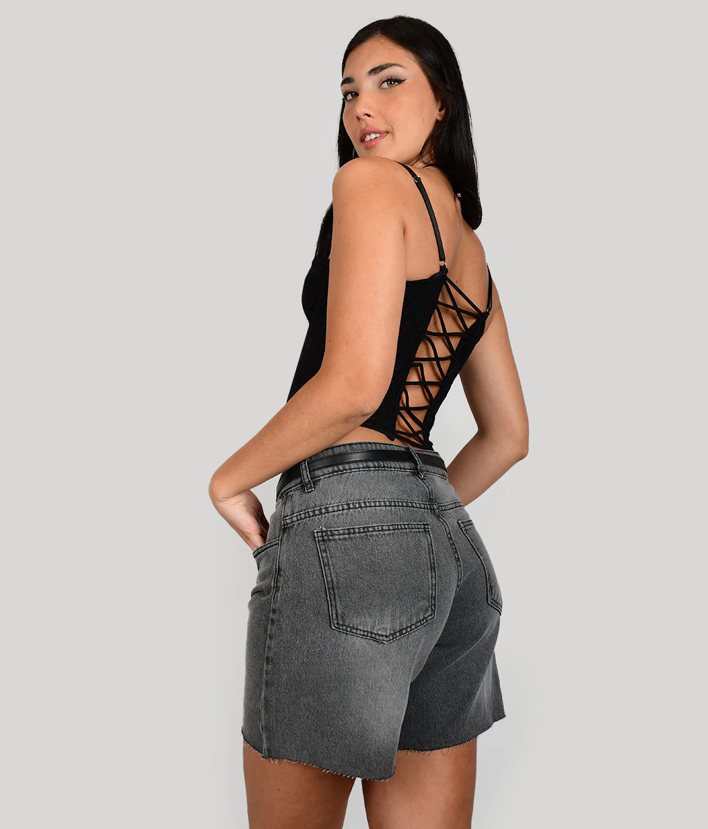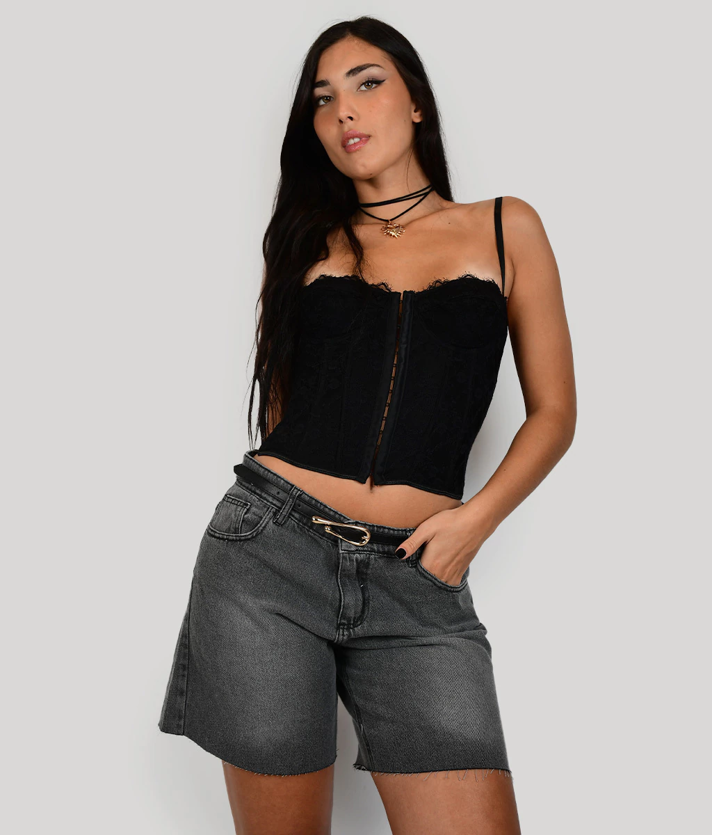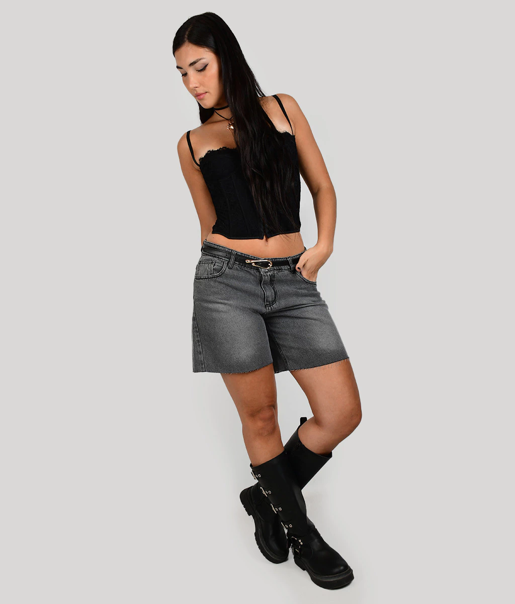 BERMUDA ESTILO SHORT DE JEAN CON BOTON, CIERRE AL FRENTE Y BOLSILLOS COMPLETOS.