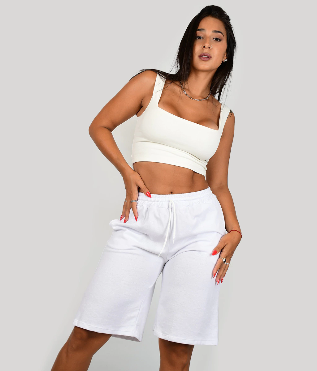 BERMUDA DE ALGODÓN RÚSTICO CON BOLSILLOS A LOS LADOS.