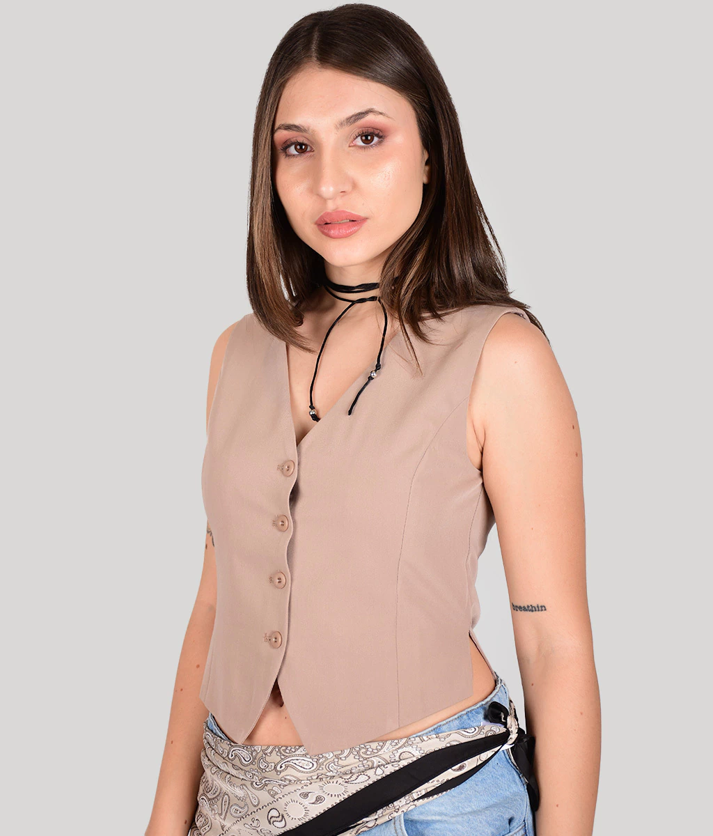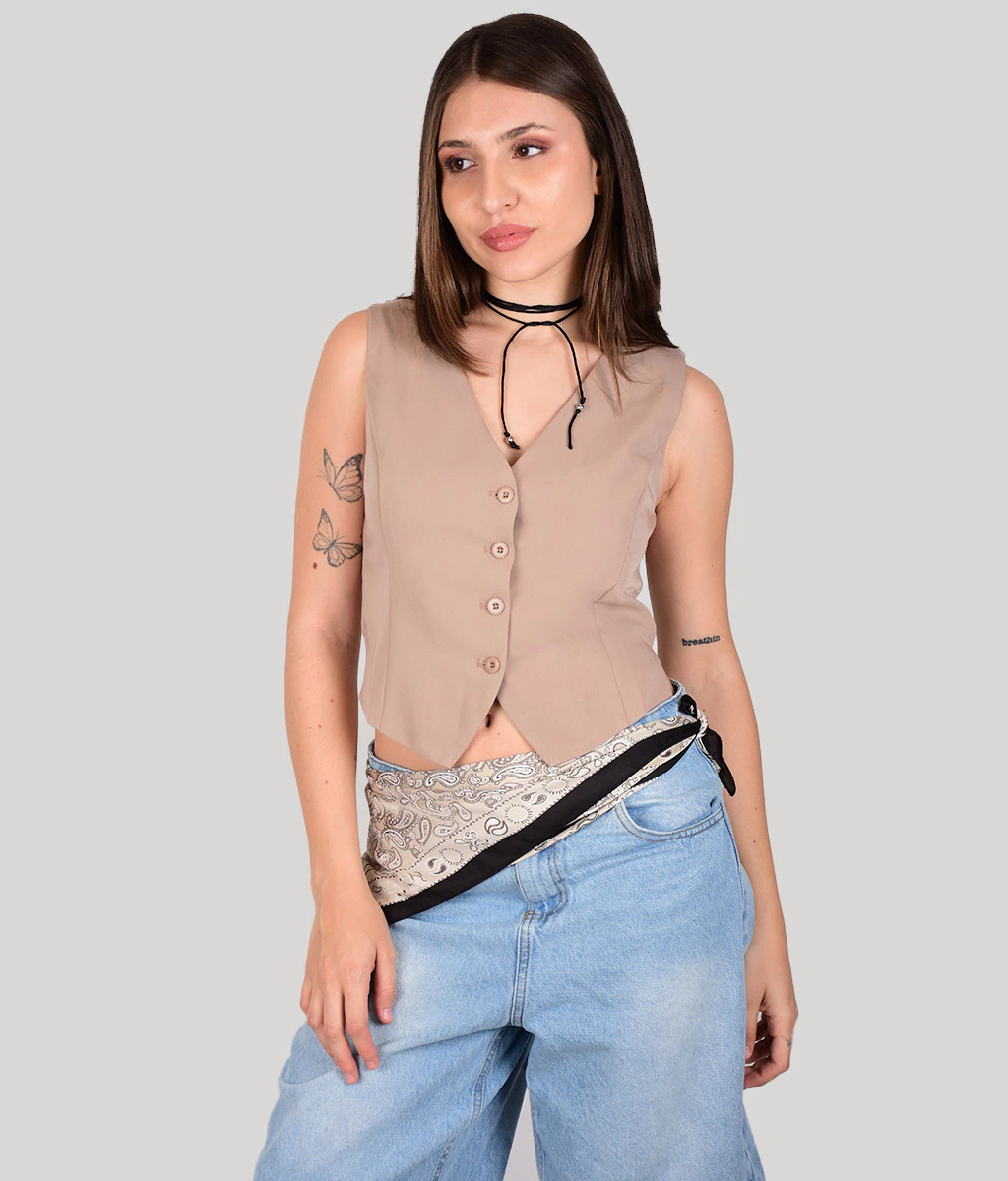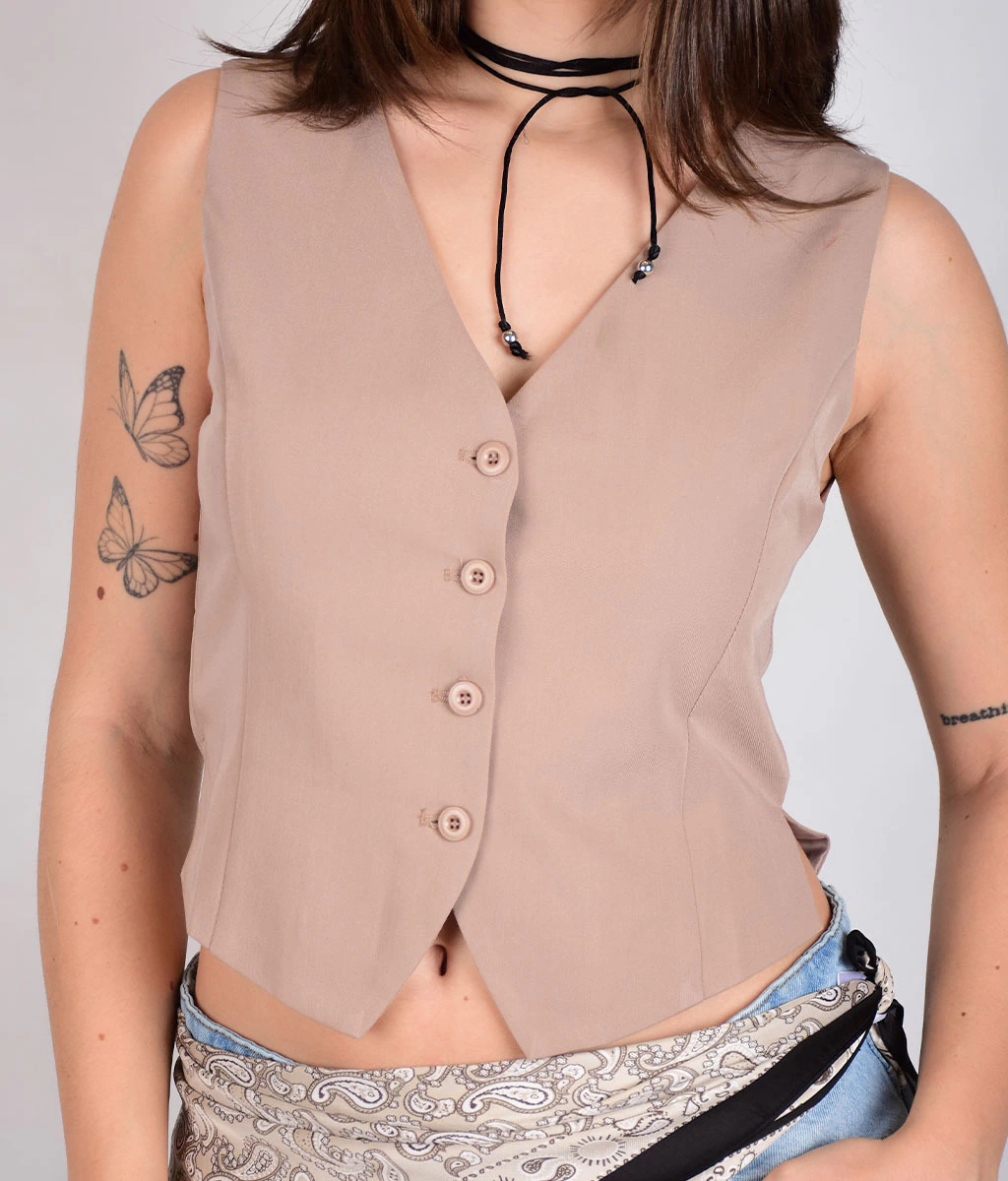 CHALECO SASTRERO CON BOTONES AL FRENTE.