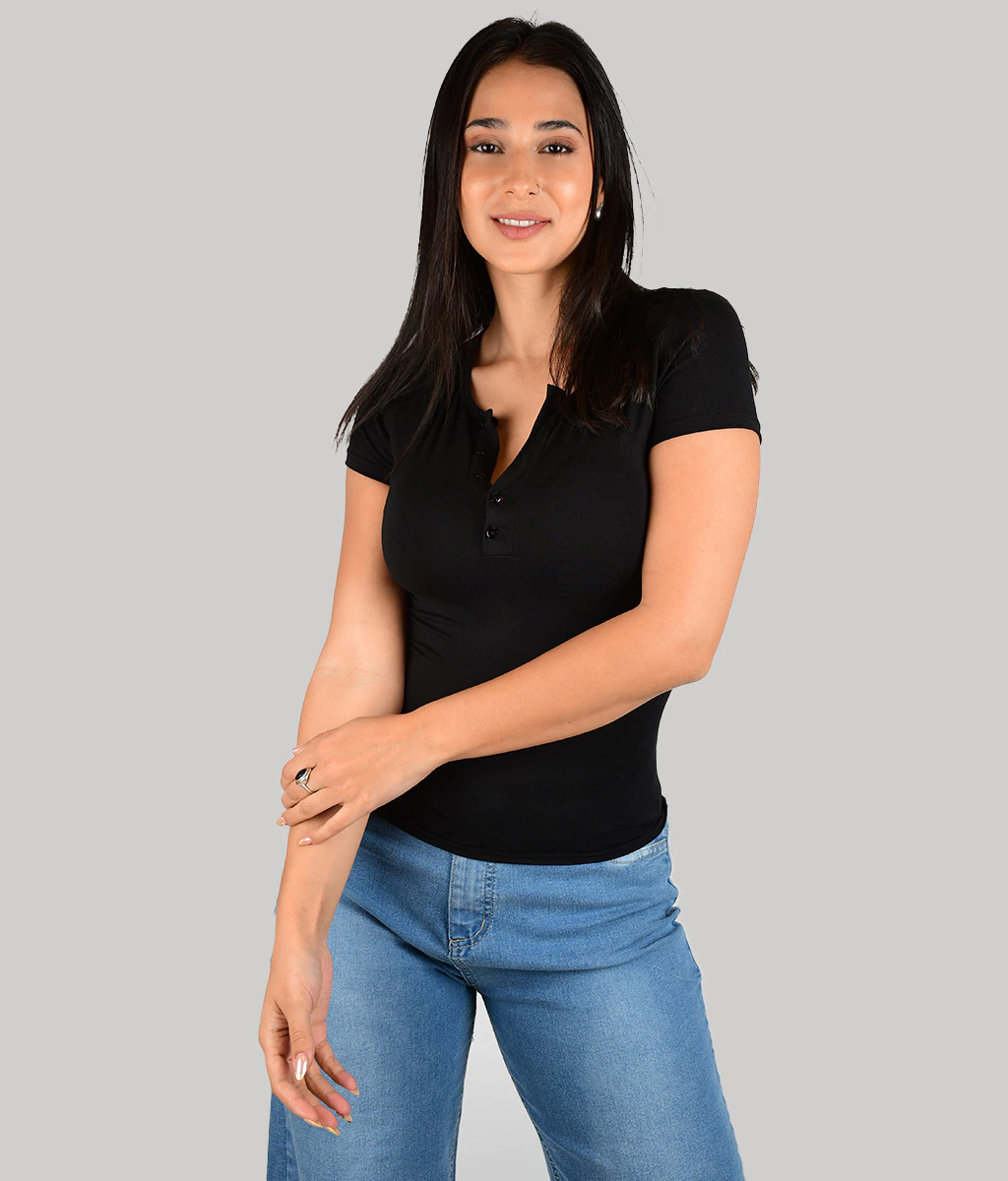 REMERA DE MODAL MANGAS CORTAS CON BOTONES.