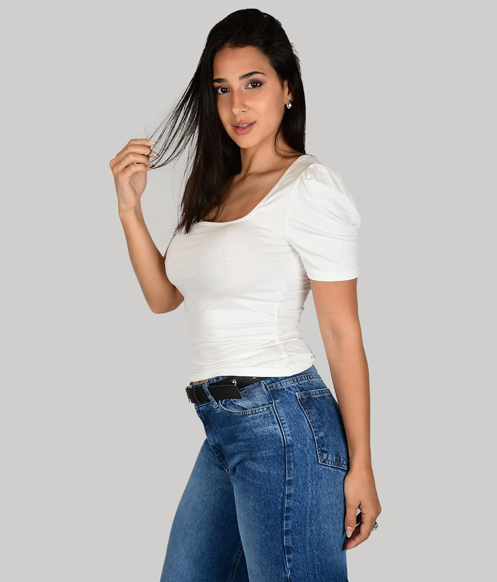 REMERA MANGA CORTA DE MODAL CON ESCOTE CUADRADO Y MANGA PRINCESA.