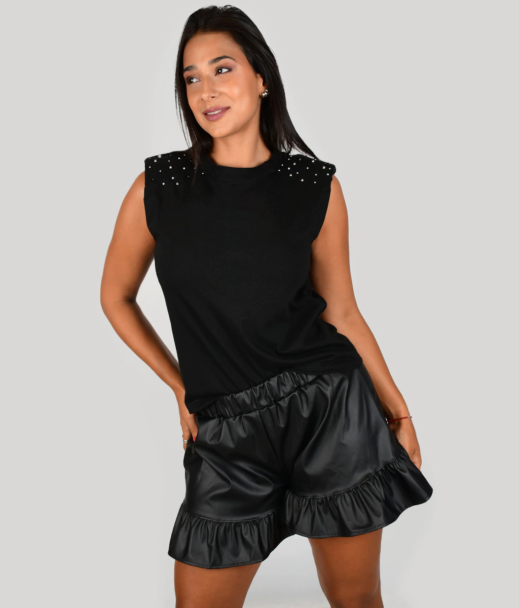 REMERA DE ALGODÓN CON APLIQUE EN HOMBRERAS.