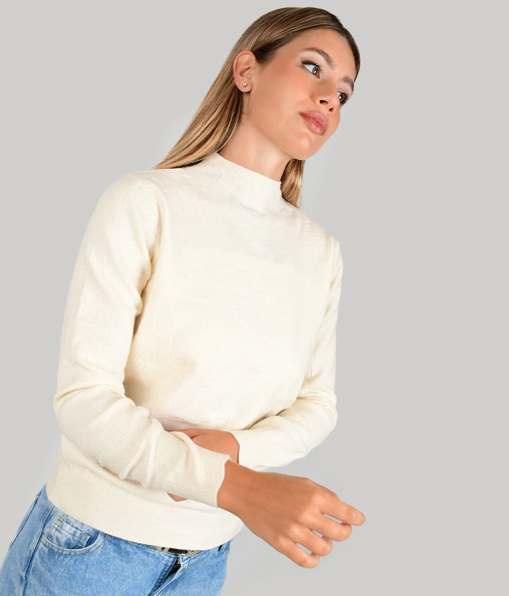 SWEATER DE HILO CON MEDIA POLERA Y PUÑOS.