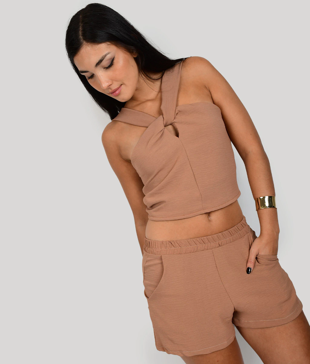 TOP BLUSA DE CEY CON LAZO, NUDO EN ESPALDA Y TIRAS PARA ATAR.