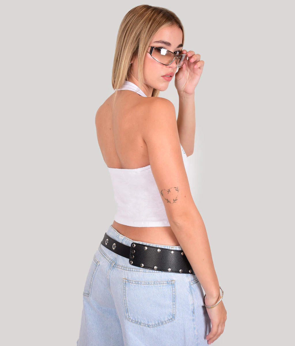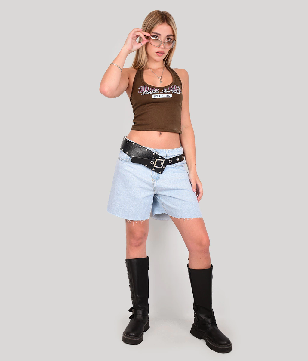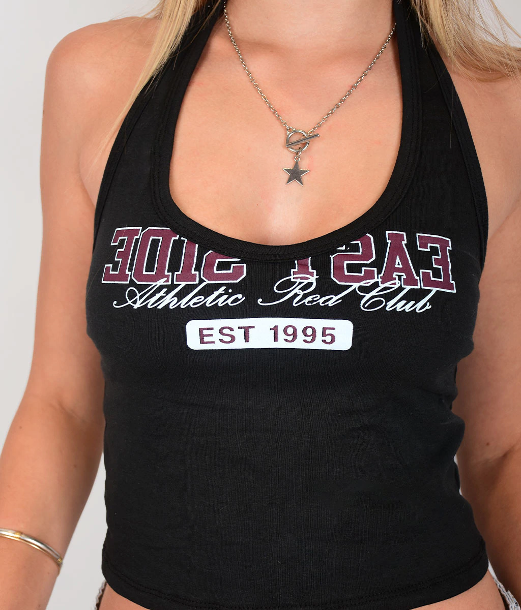 TOP HALTER DE ALGODON CON ESTAMPA AL FRENTE Y ESCOTE EN U.