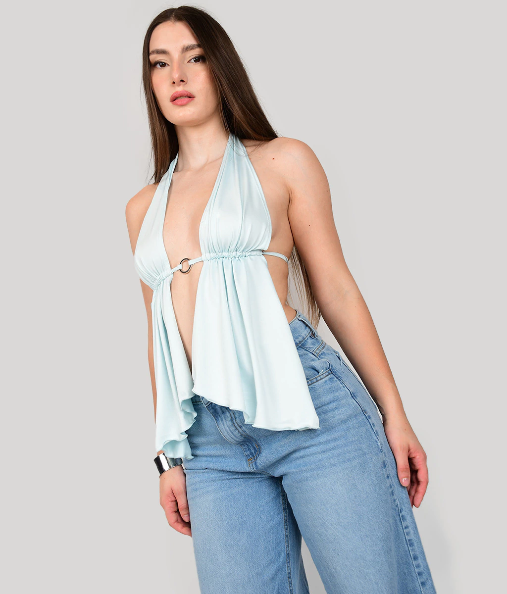 TOP DE MICROFIBRA CON ARANDELA EN ESCOTE Y TEMINACIÓN EN PICO.
