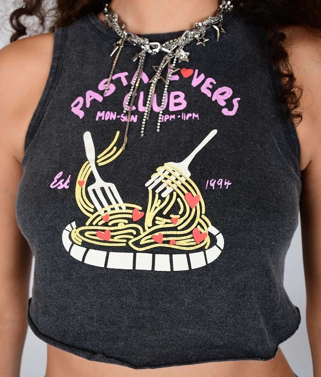TOP WASHED DE ALGODON CON ESTAMPA AL FRENTE Y CUELLO REDONDO.