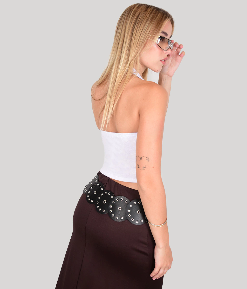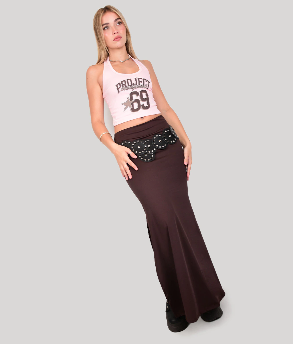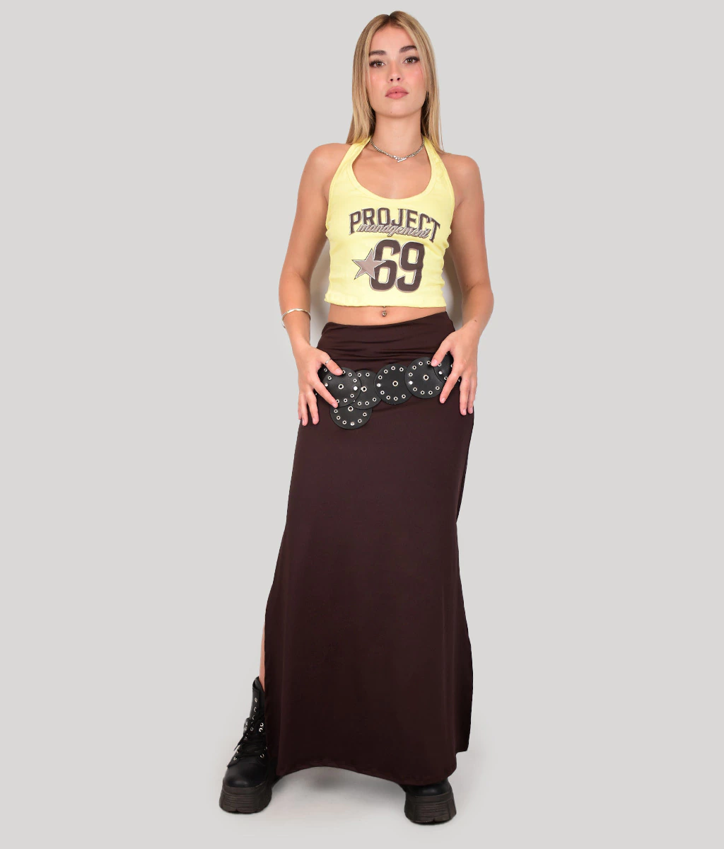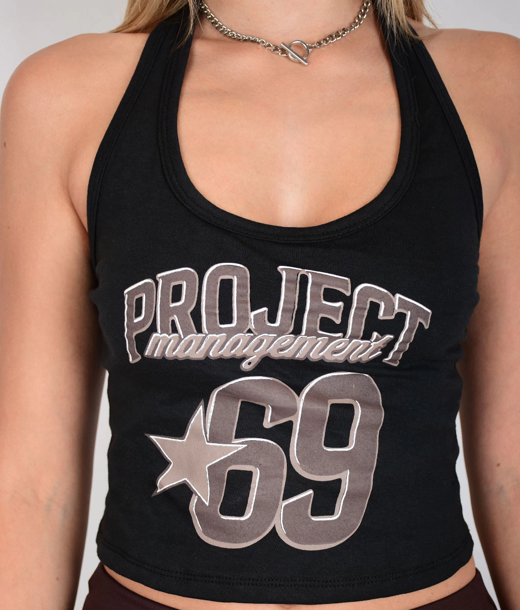 TOP HALTER DE ALGODON CON ESTAMPA AL FRENTE Y ESCOTE EN U.