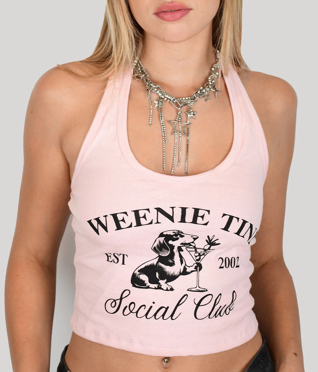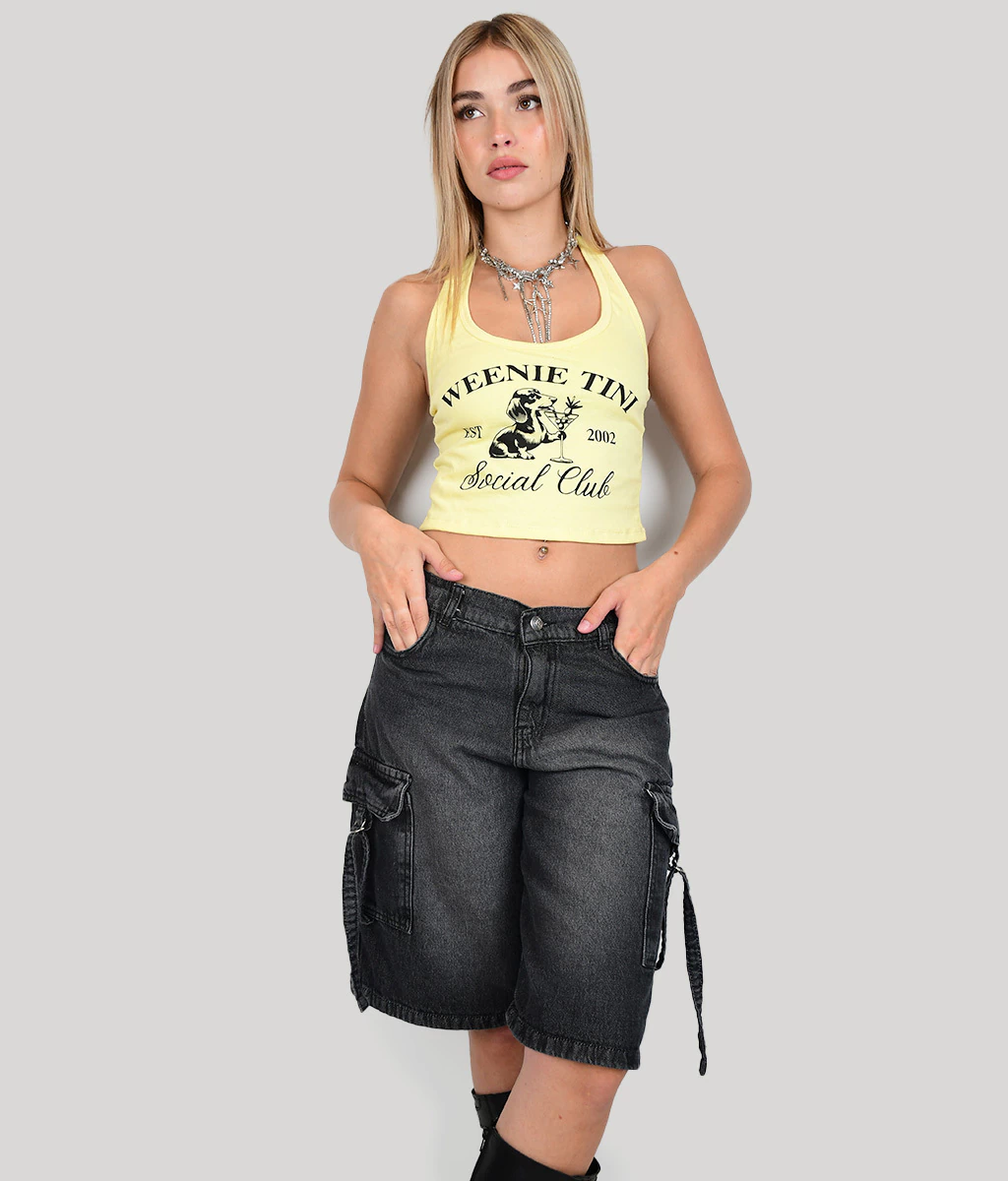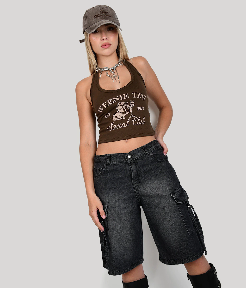 TOP HALTER DE ALGODON CON ESTAMPA AL FRENTE Y ESCOTE EN U.